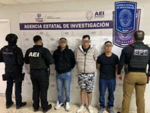 En acción policiaca conjunta detienen a tres personas armadas en el Barrio de Londres En un operativo conjunto, elementos de la Agencia Estatal de Investigación detuvieron en flagrancia
