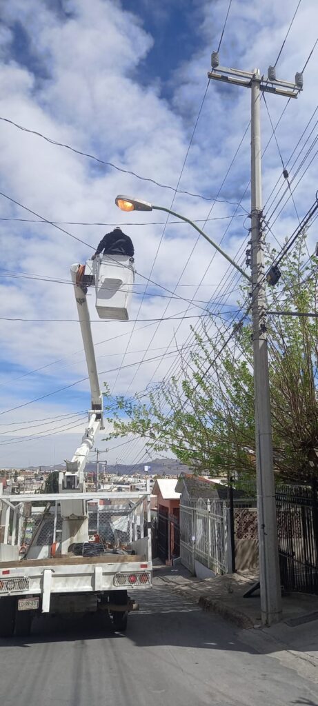 Chihuahua, Chih.- Tras el reporte de un seguidor de Radio Noticias 91.7 y lector de enblancoynegro.com.mx de una falla en el alumbrado público al interior de la colonia Jardines de Oriente, la Dirección de Mantenimiento Urbano del Gobierno Municipal asistió de manera inmediata a la zona para realizar las reparaciones correspondientes.