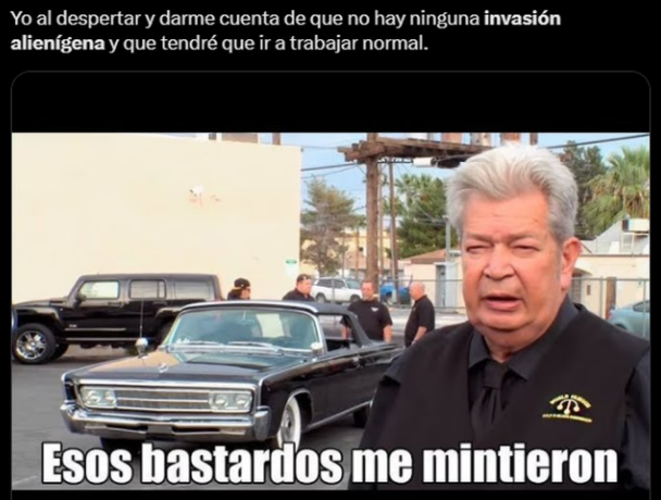 Y no, no estamos describiendo una película de ficción o una nueva serie de alguna plataforma de streaming, sino que se trata de la predicción que hizo un presunto viajero en el tiempo, la cual se volvió viral en redes sociales y ayer, que llegó la fecha dictaminada, lamentamos informar que no hubo dicha invasión, lo único que pudimos observar son miles de memes en redes sociales, donde además de burlarse un tanto de la situación, muchos exponían su emoción y espera para que los alienígenas los llevasen consigo.