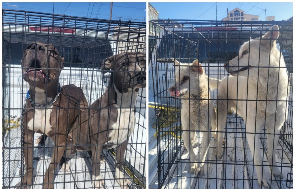 Elementos de la Agencia Estatal de Investigación, de la Fiscalía de Distrito Zona Norte, rescataron a cuatro canes en situación de maltrato, en cateos realizados en dos domicilios de Ciudad Juárez.