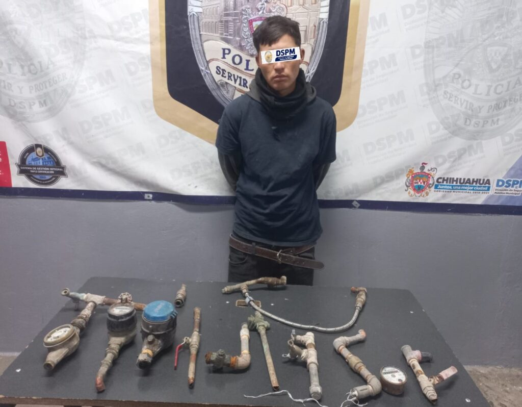 de cobre y medidores de agua que al parecer había robado de algunos domicilios.