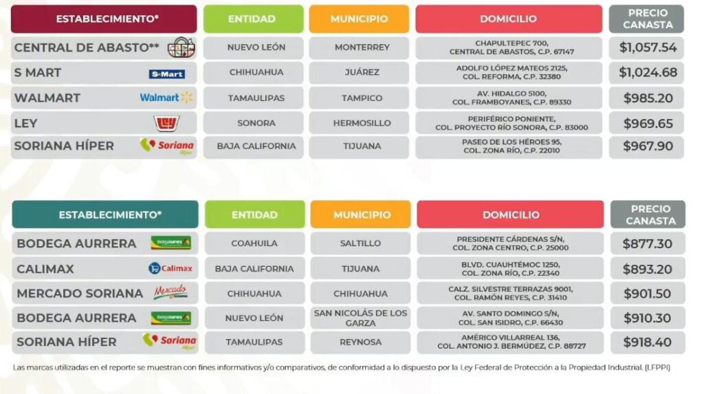 Soriana de la capital de Chihuahua se posicionó como de los más baratos, al registrar que los consumidores gastan alrededor de 901 pesos en canasta básica. Sin embargo, quedó debajo de Bodega Aurrera ubicado en Saltillo, Coahuila con 877.30 pesos; Calimax en Tijuana, Baja California se gastan 893.20 pesos.