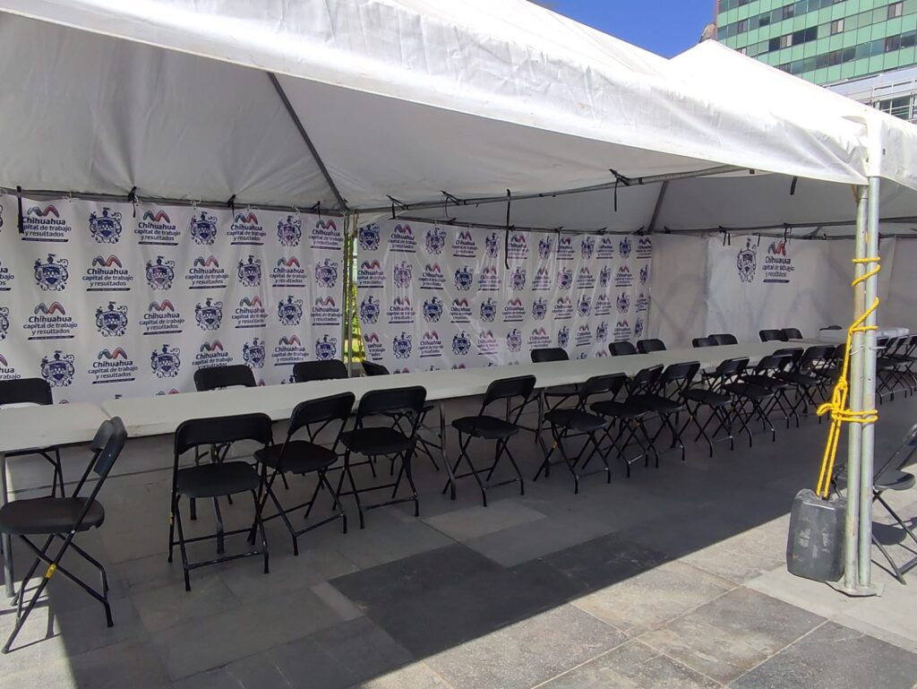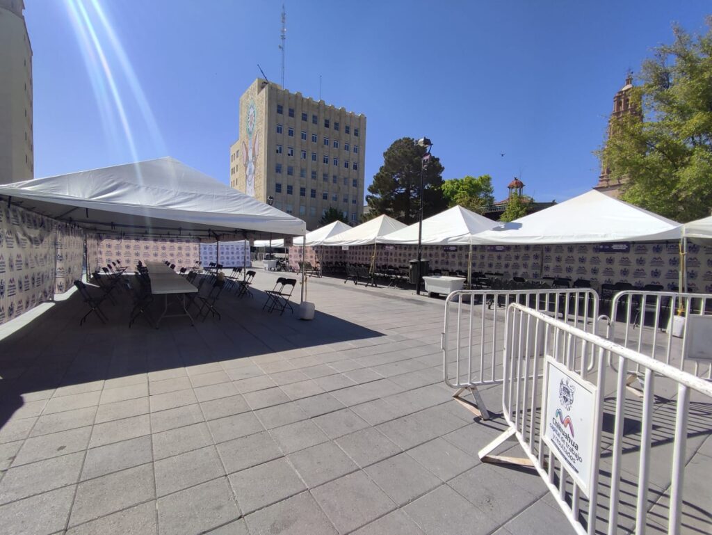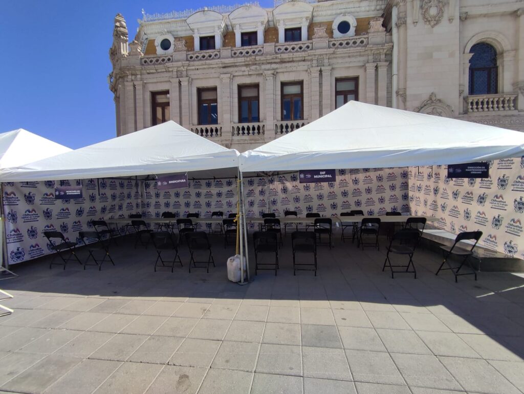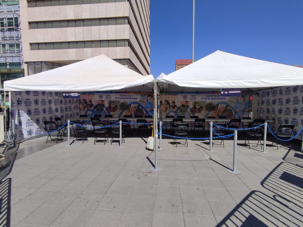 Chihauhua, Chih.- Ya está todo listo en la Plaza de Armas para una edición más del “Miércoles Ciudadano” el cual es un programa de atención directa del Gobierno Municipal en el que el Alcalde y los Directores de las diferentes dependencias estarán recibiendo peticiones desde las 5 de la tarde hasta las 8 de la noche, el día de hoy.
