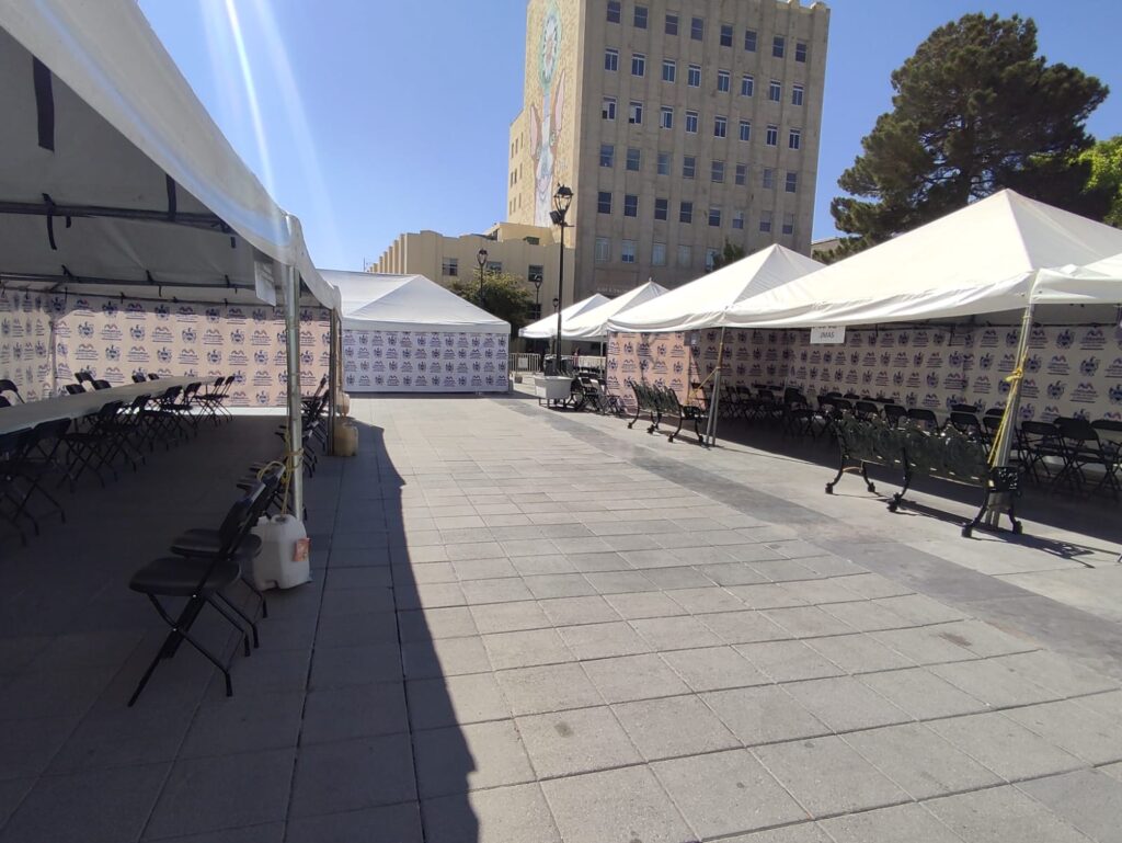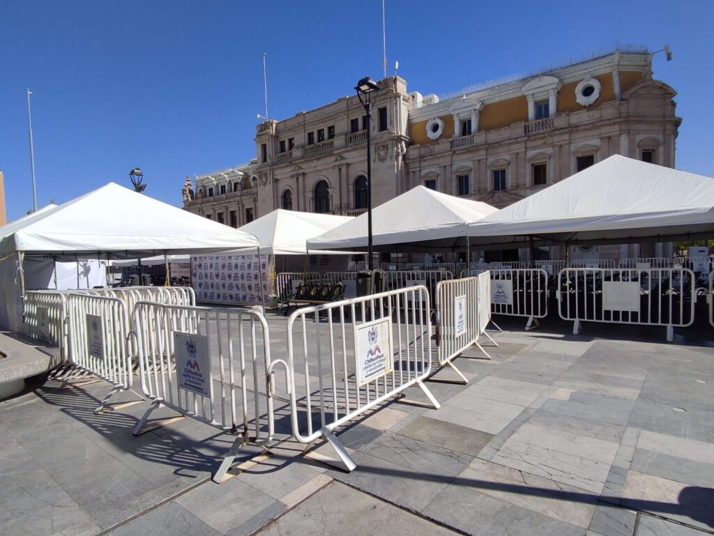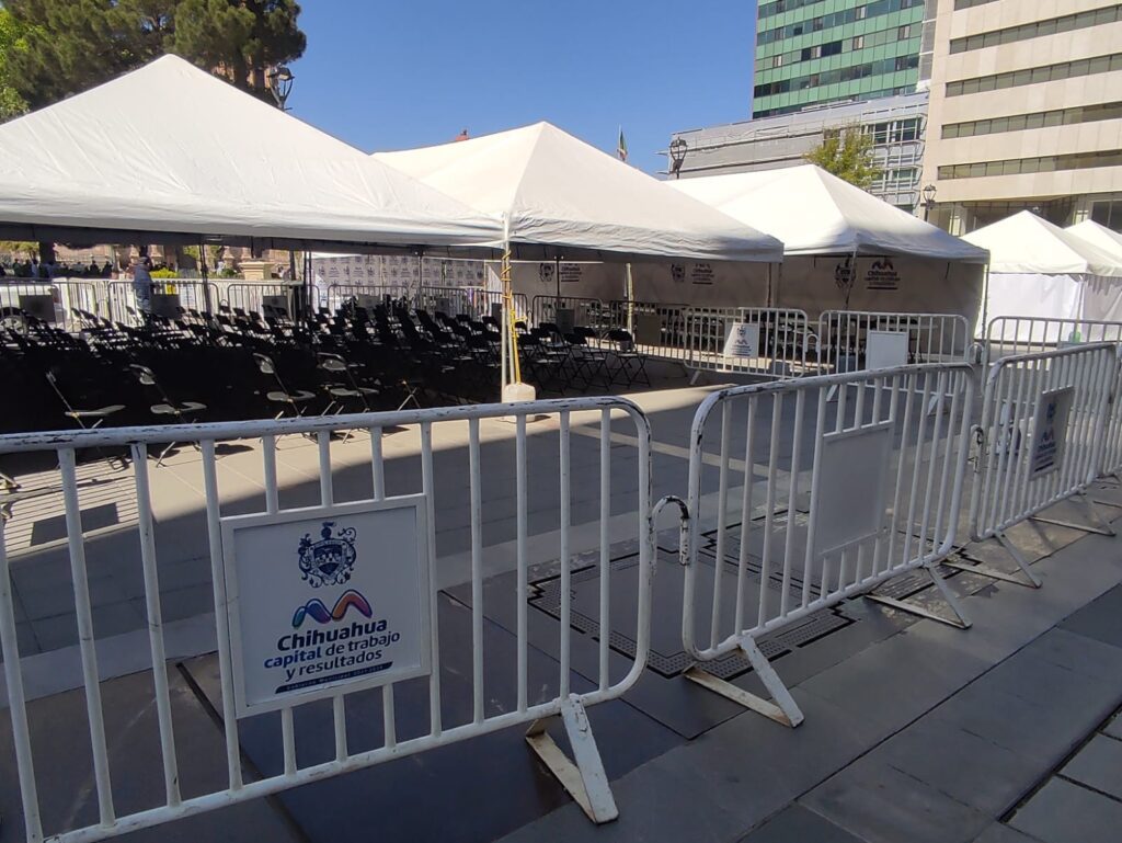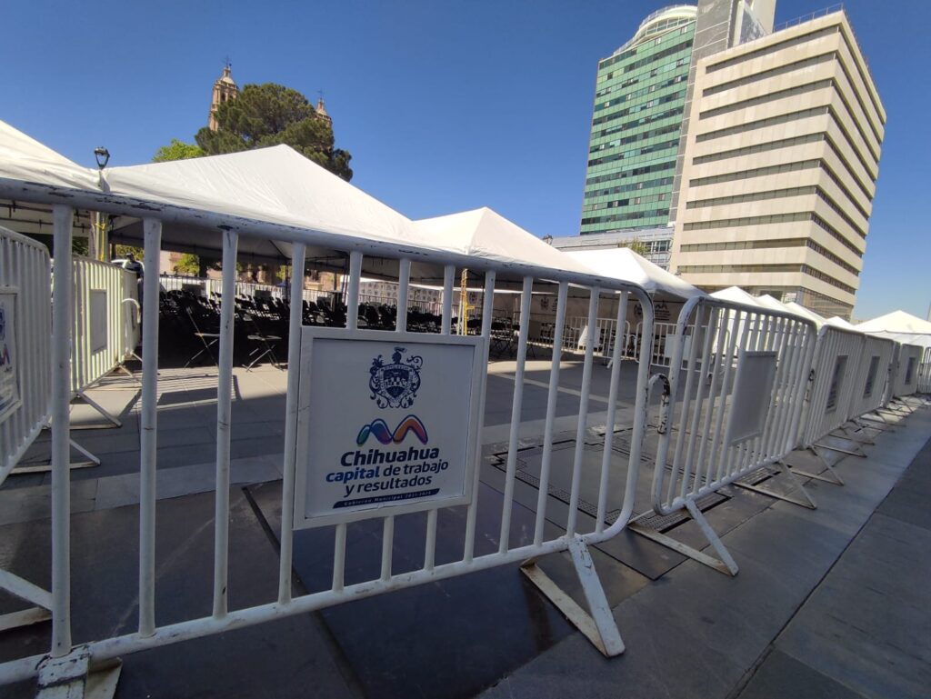 Chihauhua, Chih.- Ya está todo listo en la Plaza de Armas para una edición más del “Miércoles Ciudadano” el cual es un programa de atención directa del Gobierno Municipal en el que el Alcalde y los Directores de las diferentes dependencias estarán recibiendo peticiones desde las 5 de la tarde hasta las 8 de la noche, el día de hoy.