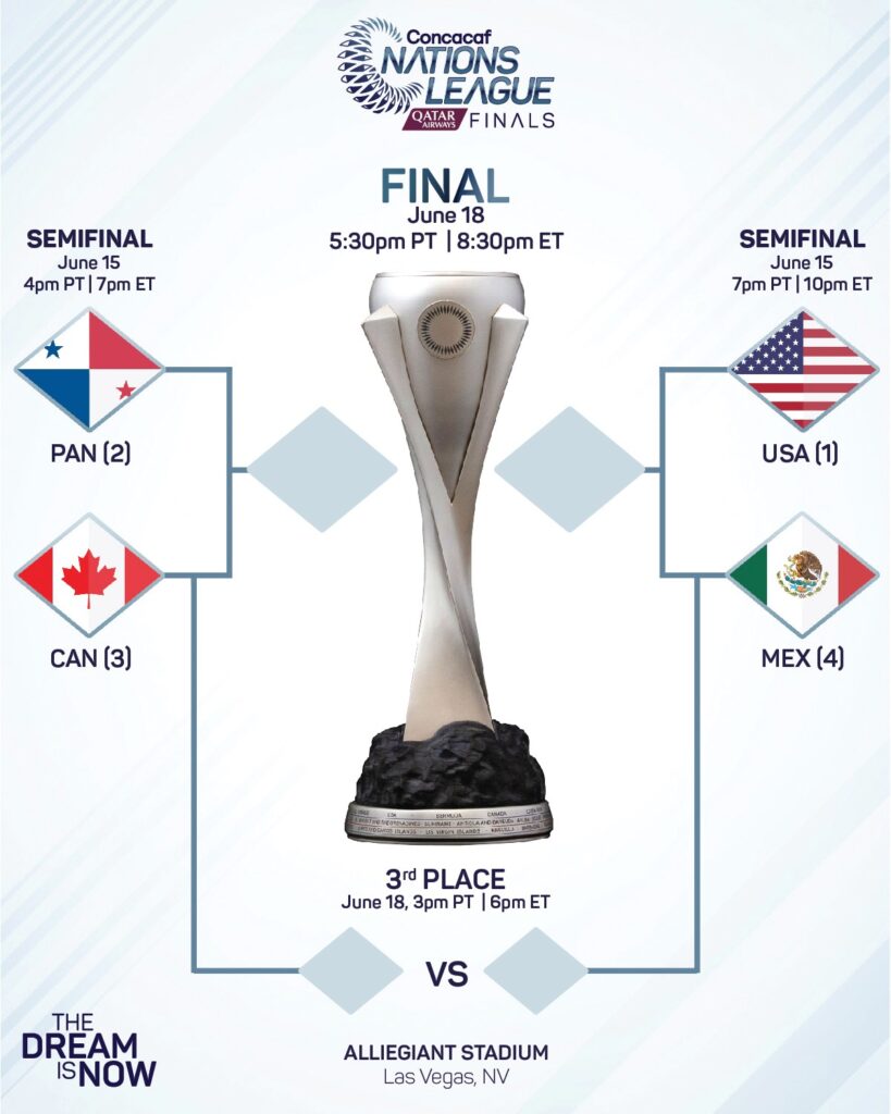 Concacaf dio a conocer los días y los horarios de las semifinales de la Liga de Naciones, que se disputarán el próximo verano en el Allegiant Stadium de Las Vegas, Nevada.