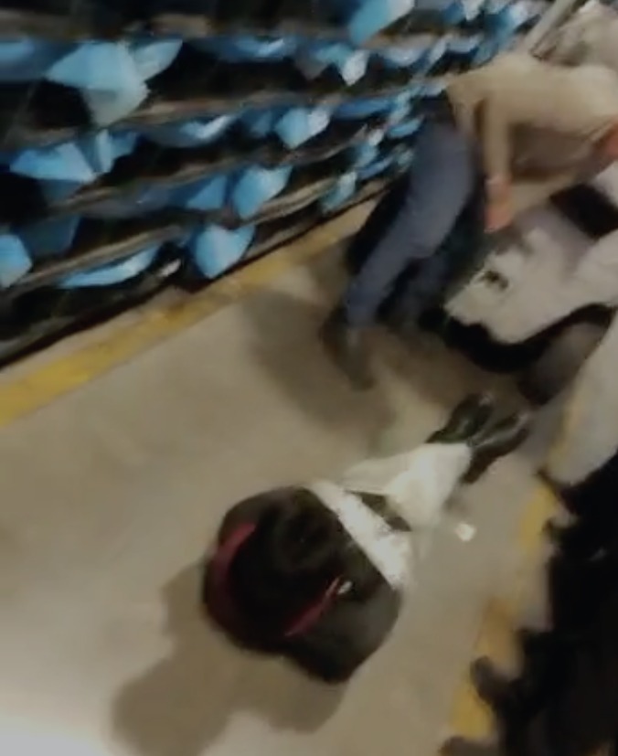 (GALERÍA) Lo amarran con cinta adhesiva y lo arrastran con montacarga por el piso en maquila