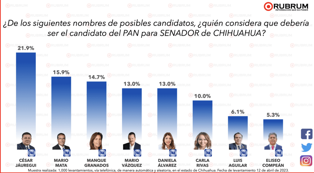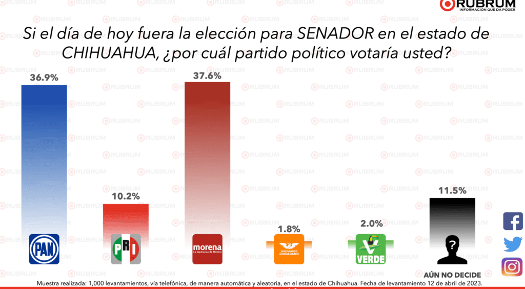 La empresa encuestadora RUBRUM dio a conocer los resultados sobre que opinan los chihuahuenses sobre sus favoritos para ser senadores representando al estado grande para las próximas elecciones del 2024.
