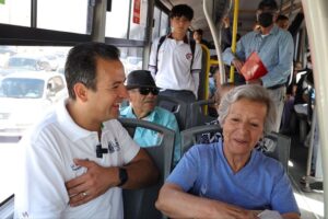 Chihuahua, Chih.- El Alcalde, Marco Bonilla dio a conocer en sus redes sociales que este lunes asistió a sus labores en el transporte de ruta troncal Bowi como