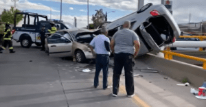 Durante la mañana de este lunes, 17 de abril se registró la volcadura de un vehículo luego de haber impactado con otro en el Periférico de la Juventud