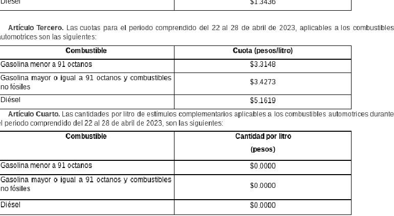 - Roja o premium (de 91 octanos o más): 3.4273 pesos