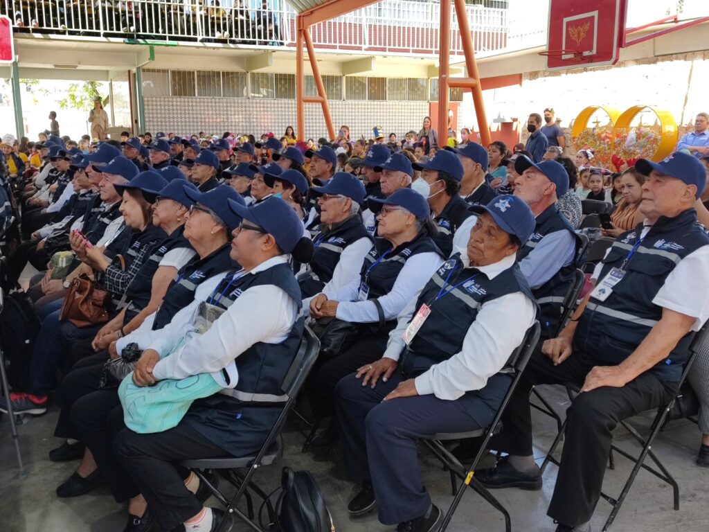 Chihuahua, Chih.- Tras el arranque del programa municipal “Abuelito Vigilante” 91 adultos mayores de hasta más de 80 años de edad recibieron la oportunidad de seguir laborando y tener un apoyo económico quincenal apoyando en la entrada y salida de los estudiantes.