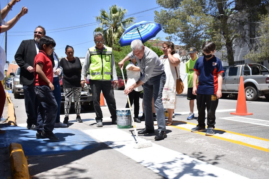 El diputado del PAN, Mario Rodríguez, estuvo en el fraccionamiento Junta de los Ríos, para realizar la pinta de pasos peatonales cercanos a la Escuela Primaria “Antonio Quevedo Caro 2244”, de la Normal del Estado “Luis Urías Belderrain” y del Jardín de Niños “Antonio Quevedo Caro 1228”.