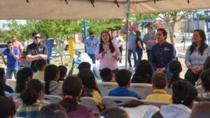 Delicias.- La Secretaría de Desarrollo Humano y Bien Común (SDHyBC), entregó equipamiento para un parque y diversos apoyos, con el propósito de mejorar los espacios comunitarios y fomentar