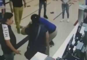 En redes sociales circularon imágenes de una cámara de seguridad de un cine, en los momentos cuando una empleada deja su área de trabajo para auxiliar a una