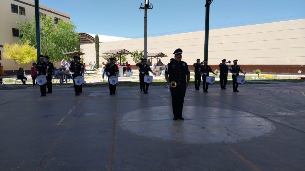 La SecretarĂa de Seguridad PĂşblica informĂł que este fin de semana se llevĂł a cabo un concurso de bandas de guerra donde personas prisioneras participaron por cuenta propia y mostraron su talento en la corneta y el tambor.