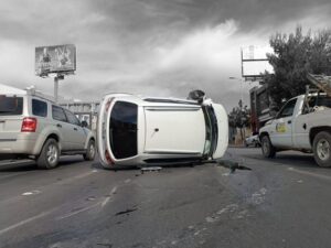 Agentes de la Policía Vial atendieron volcadura en la avenida cantera la cual provocó caos vial en dirección de Sur a Norte en donde un vehículo de color