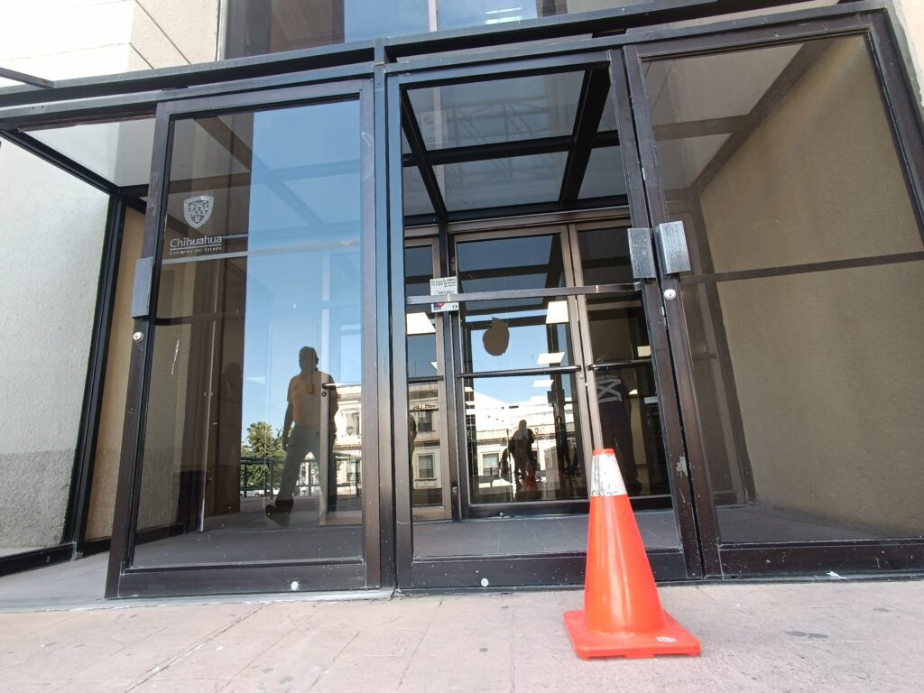 Esta mañana autoridades realizan una investigación para identificar el presunto responsable que quebró los vidrios de las puertas en uno de los edificios perteneciente a Gobierno del Estado.