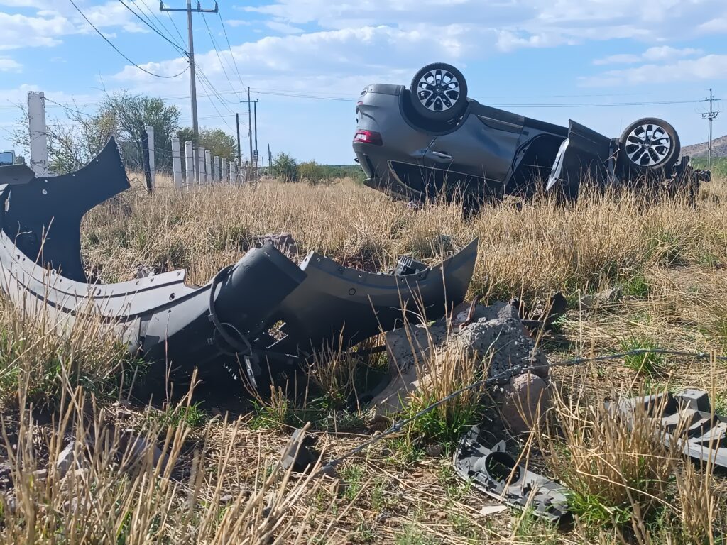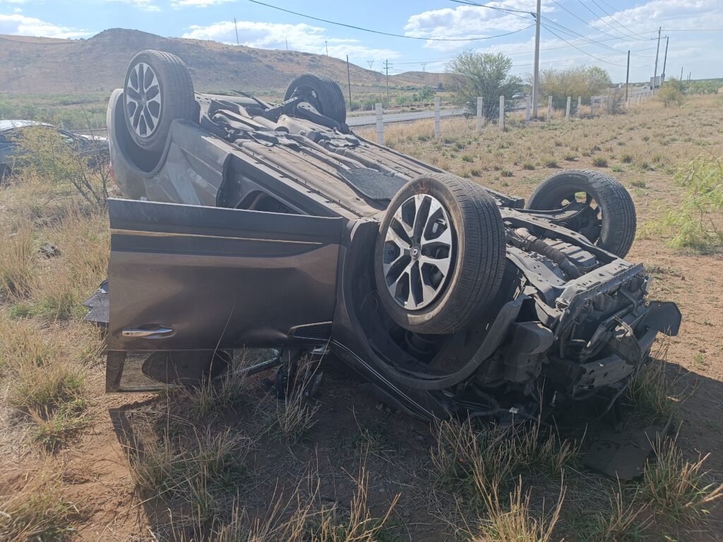 Una mujer perdió el control de su vehículo mientras iba por la carretera a Delicias por lo que terminó por volcarse y quedando lesionada.