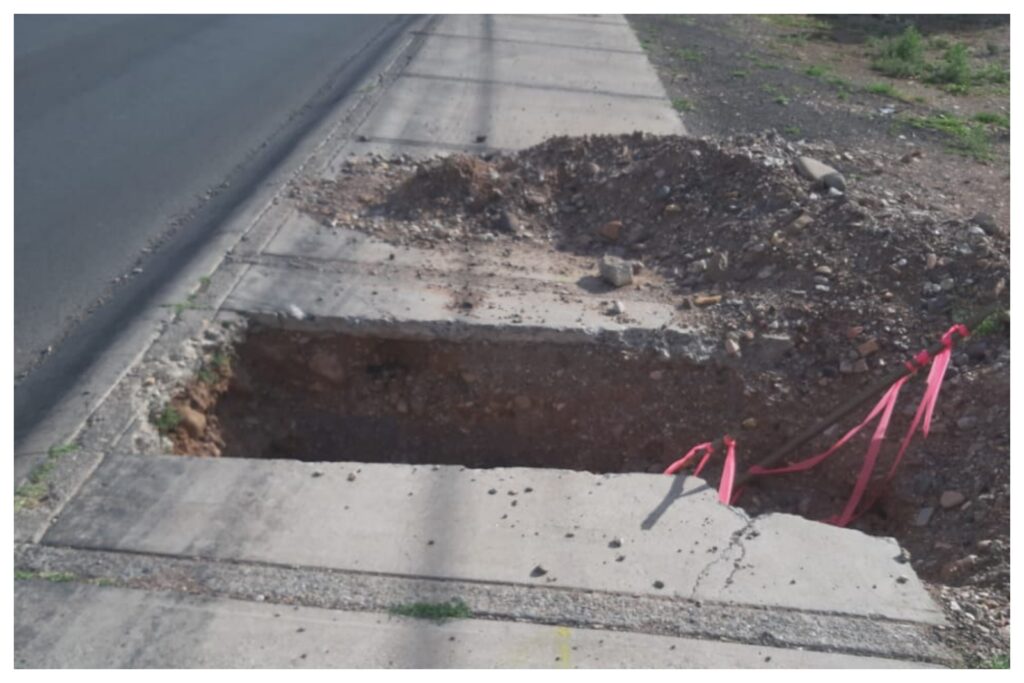 Vecinos indicaron que este problema ya tienen tiempo y no ha sido solucionado, representando un peligro para aquellos buscar trasladarse por la zona a pie ya que puede causar lesiones graves si no hay un cuidado preventivo por parte de la persona debido a que no cuenta con un señalamiento de precaución.