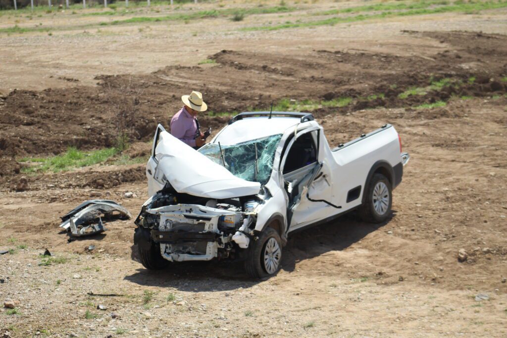 El conductor de una (pickup, Volkswagen) color blanco, circulaba de Sura Norte por el libramiento Oriente en el kilómetro 9+100 quién iba alta velocidad perdió el control de su vehículo por lo que terminó desviándose del camino.