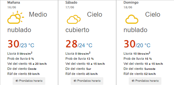 Asimismo se prevé una probabilidad de precipitaciones del 2%, rachas de viento de bajo calibre y una humedad del 23%.