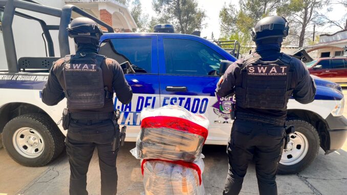 Parral.- Elementos de la Fuerza Especial SWAT de la Secretaría de Seguridad Pública del Estado (SSPE), aseguraron 28 kilogramos de droga durante un patrullaje de reforzamiento táctico.