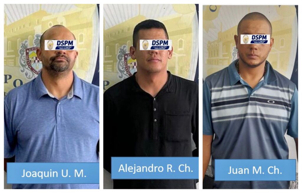 Los detenidos fueron identificados con los nombres de Juan M. Ch, de 34 años; Alejandro R. Ch. de 34 y Joaquín U. M., de 40, mismos que fueron puestos a disposición de la Fiscalia General del Estado para dar seguimiento al caso y determinar su probable relación en probables hechos delictivos.