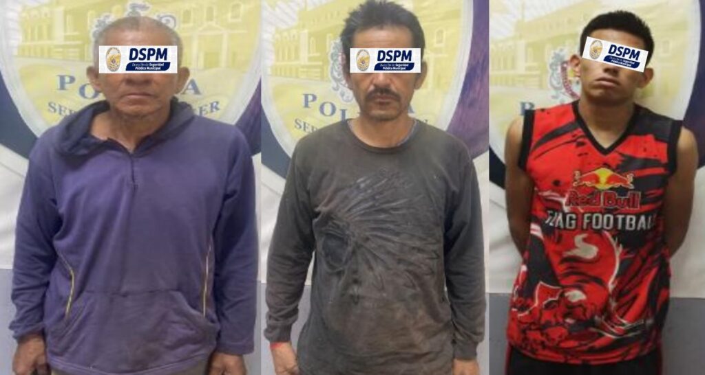 Agentes de la PolicĂa Municipal detuvieron a tres hombres, acusados de cometer en hechos distintos, robos sin violencia a locales comerciales; uno de ellos en la carretera a Aldama y los otros dos en la rĂşa Chihuahua-Delicias.