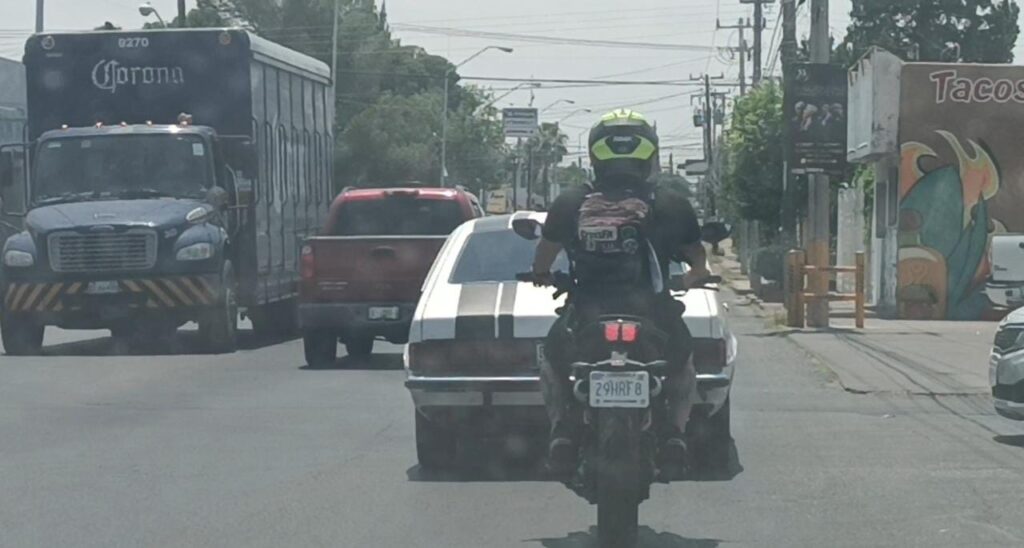 Cuadras más adelante lo rebasa y la moto quien termina atrás decide seguirlo por lo que se presume iniciaría una riña entre los conductores. Sin embargo, solo se quedó en insultos y malas palabras debido a que el automóvil llegó a su destino y el motociclista decidió continuar su camino.