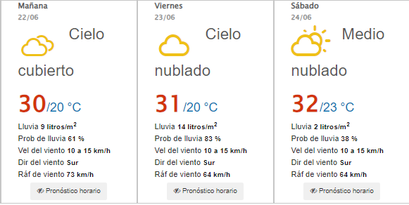 Cabe señalar que el termómetro alcanzará lo máximo alrededor de las 2 de la tarde, mientras que el día cerrará con un cielo nublado y 27 grados centígrados.