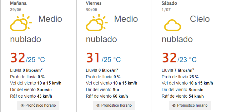 Asimismo se prevé una probabilidad de precipitaciones del 0%, rachas de viento de bajo calibre y una humedad del 39%.