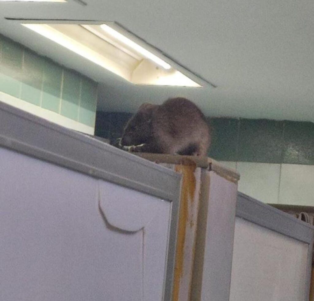 Fuentes al interior del IMSS proporcionaron a www.enblancoynegro.com.mx una serie de imágenes del hospital Morelos del IMSS, en una de ellas de manera impactante aparece una rata gigante en los baños del área de mujeres.