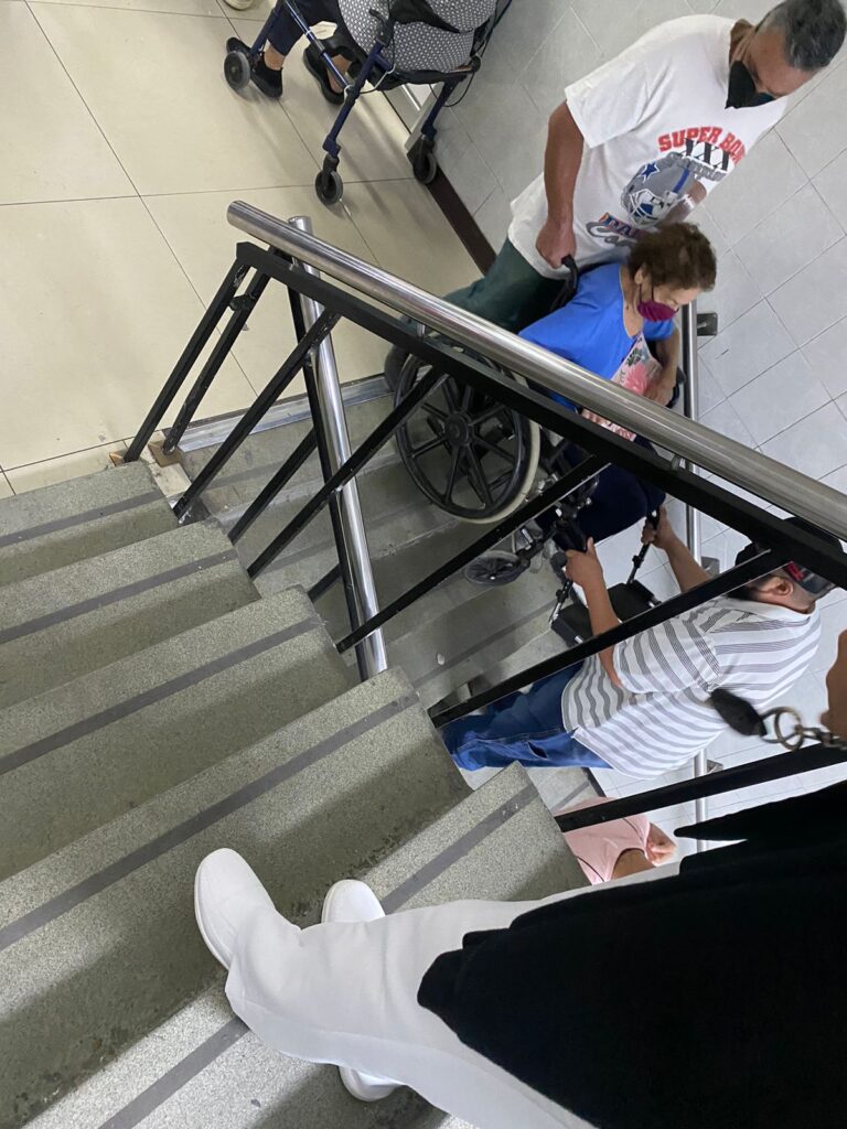 De igual manera denunciaron la falta de servicio por parte de los elevadores, por lo que pacientes en silla de ruedas tienen que pedir apoyo de familiares y terceros que los apoyen a bajar por las escaleras.