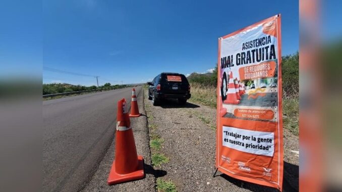 Los regidores ciudadanos montaron este servicio que promocionan con pancartas en las que se puede apreciar, tanto el logotipo del partido Movimiento Ciudadano, así como el nombre del diputado local plurinominal, Francisco Sánchez Villegas, con el supuesto objetivo desinteresado de brindar apoyo y seguridad a los conductores afectados que transiten por esa carretera.