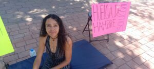 Chihuahua, Chih.- Una de las empleadas afectadas por los despidos masivos en el Bienestar se puso en huelga de hambre frente a dichas oficinas ubicadas en la Nicolas