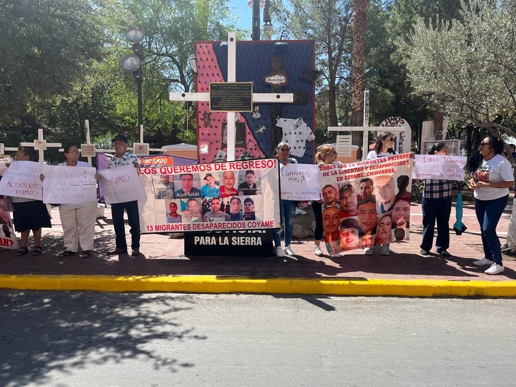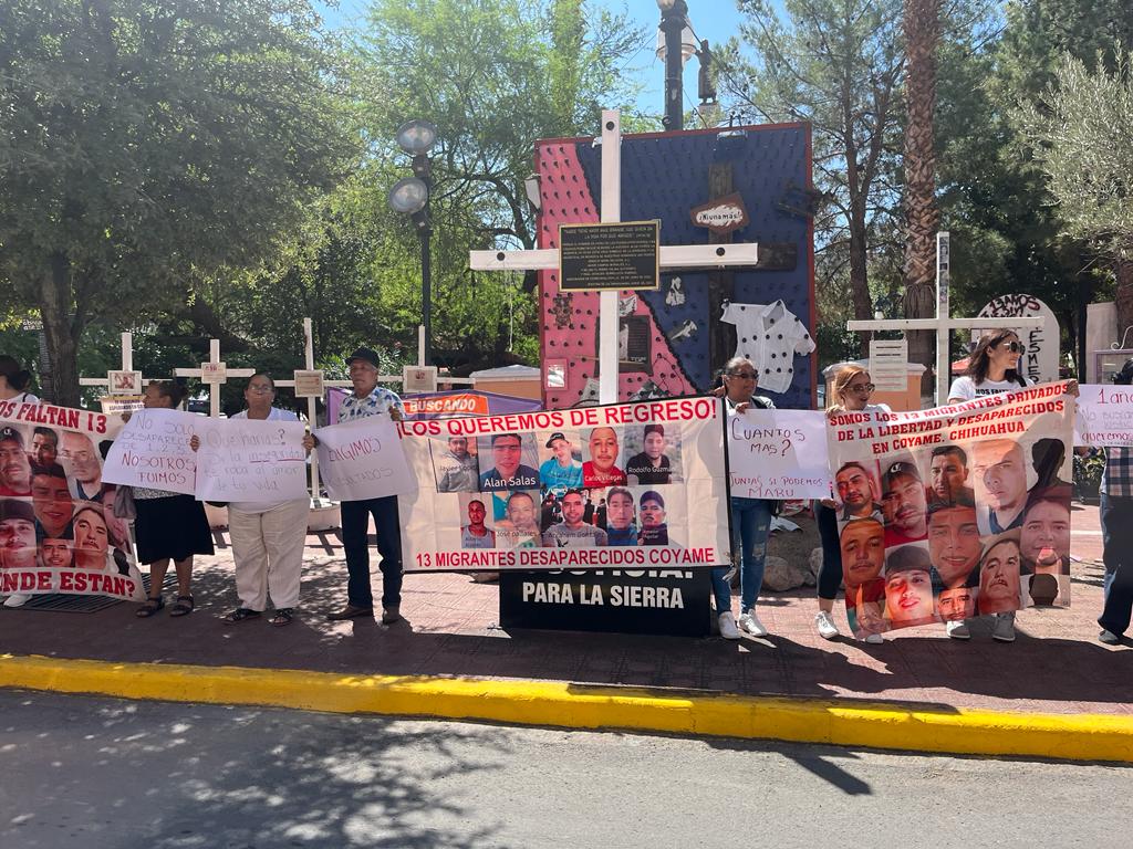 Frente a las instalaciones de Palacio de Gobierno se presentó una manifestación por parte de los familiares de los 13 migrantes desaparecidos en Coyame y como medida para que las autoridades los atiendan, estarán cerrando dos calles del Centro Histórico.
