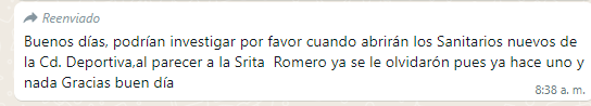 Cabe señalar que en su momento este módulo de sanitarios se encontraba pendiente de entrega por parte de la Secretaría de Comunicaciones y Obras Públicas del Estado, ya que no se encuentran terminados al 100% debido a problemas administrativos.