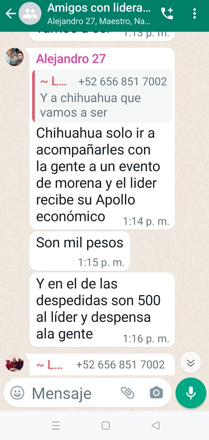 Exhibe Acción Nacional mensajes de Whatsapp donde los líderes de Morena en el Estado ofrecieron dinero para acudir a la marcha de este día, “Quesque” para pedir entrega de libros de texto