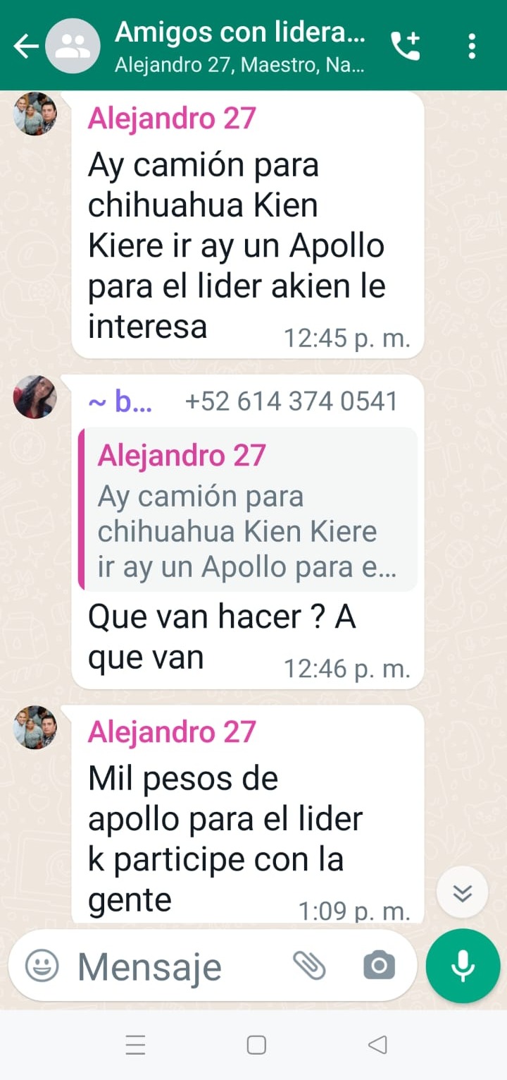 Existen testimoniales y convocatorias a través de chats, donde militantes de MORENA ofrecen un estímulo de mil pesos y comida a personas dispuestas a viajar de Juárez a Chihuahua, dijo Gabo Diaz, presidente estatal del PAN.