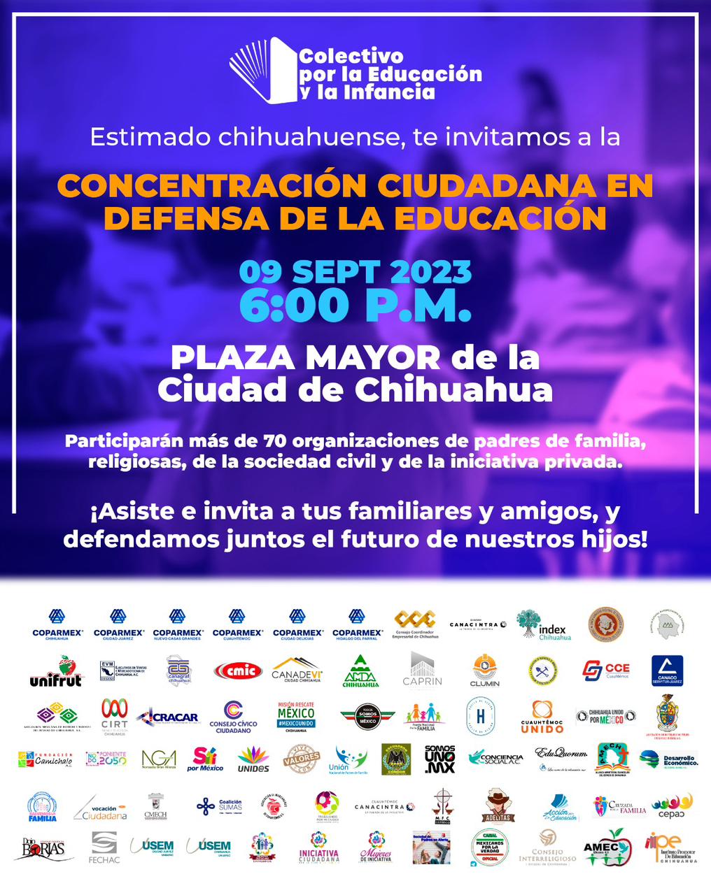 Chihuahua, Chih. – Miles de padres de familia harán una concentración ciudadana en defensa de la educación en las inmediaciones de la Plaza Mayor para exigir un alto