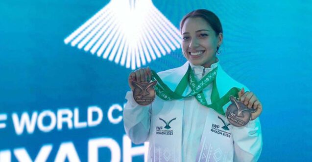 Irene Borrego consiguió dos medallas de bronce en el Campeonato Mundial de Levantamiento de Pesas 2023 que se realiza en Arabia Saudita Irene Borrego ganó dos medallas de bronce para México en el