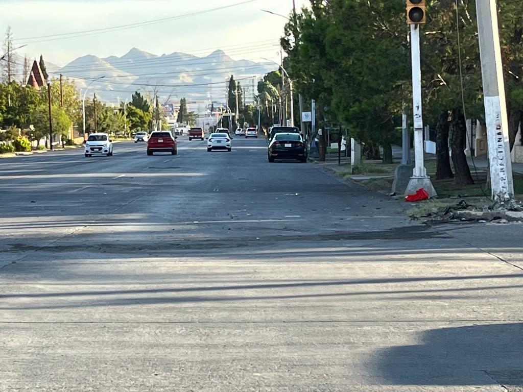 En estos momentos quedan los restos del siniestro justo bajo los semáforos en dónde se observan vidrios y partes de los faros.