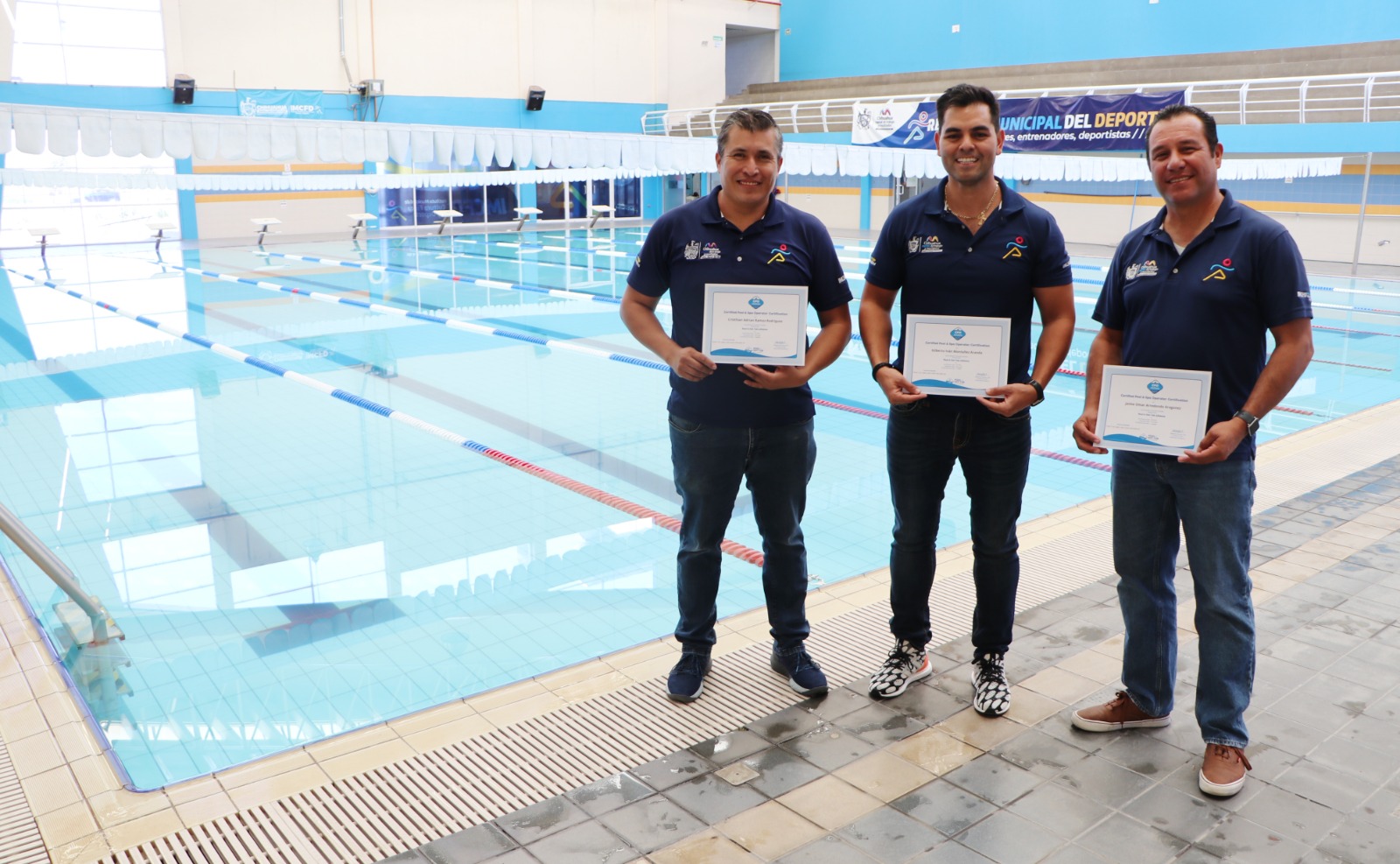 Chihuahua, Chih.- Coordinadores de mantenimiento de centros deportivos a cargo del Instituto Municipal de Cultura Física y Deporte (IMCFD), obtuvieron las certificaciones de control y calidad de agua,