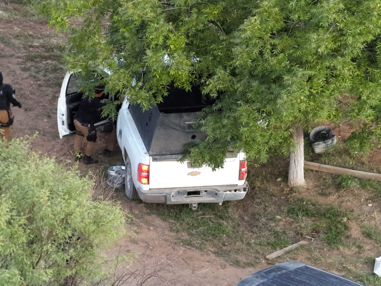Durante la operación de rastreo en la zona, las autoridades también aseguraron la camioneta Jeep Cherokee de color gris con blindaje, así como una camioneta Silverado color blanca adaptada con una caja de blindaje artesanal. En estas últimas se encontraron siete cargadores y 112 cartuchos útiles de calibre 7.62x39mm.