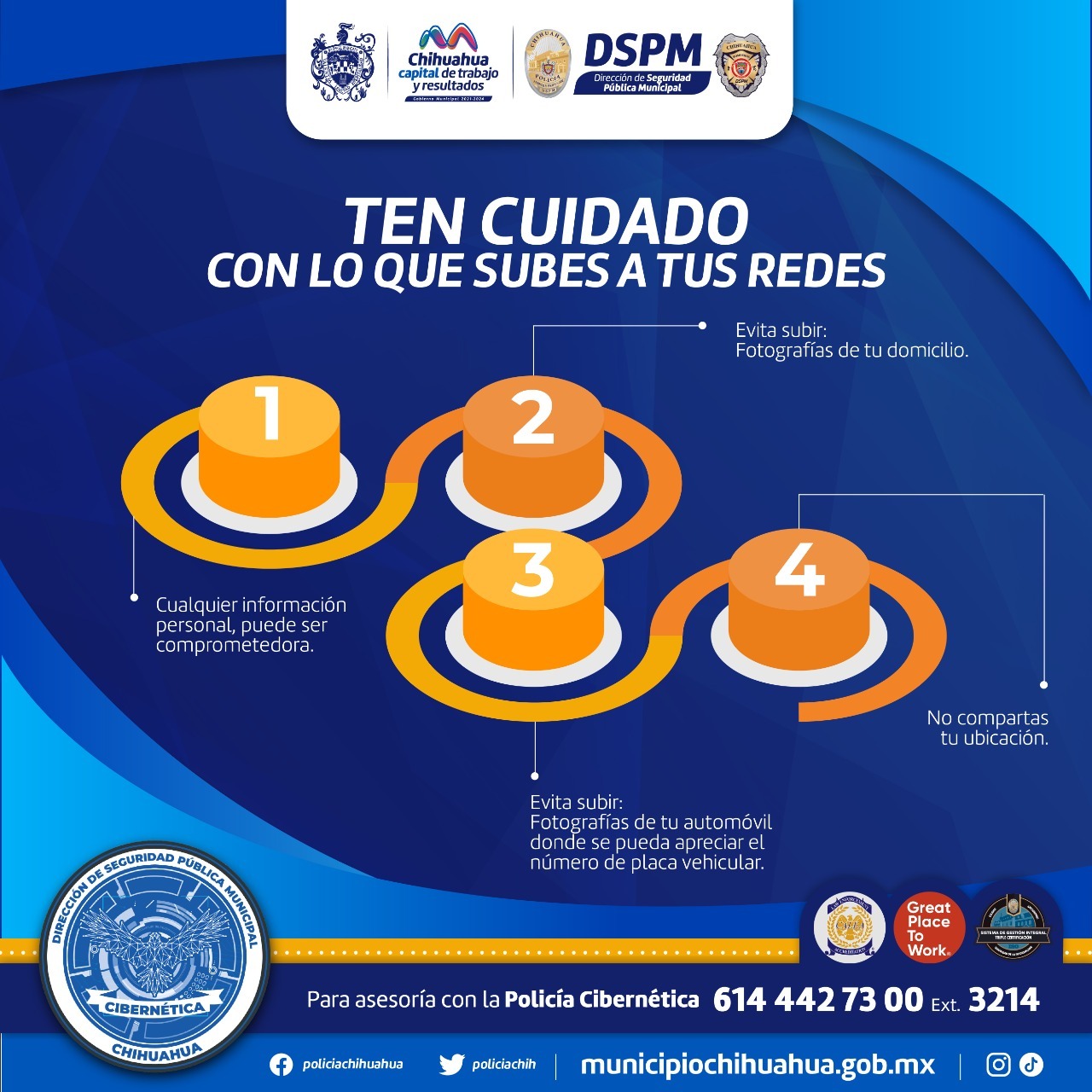 Chihuahua Chih.- Derivado de cientos de casos que han sido reportados a la Policía Cibernética del Municipio referentes a fraudes y hackeos en las diferentes redes sociales, la