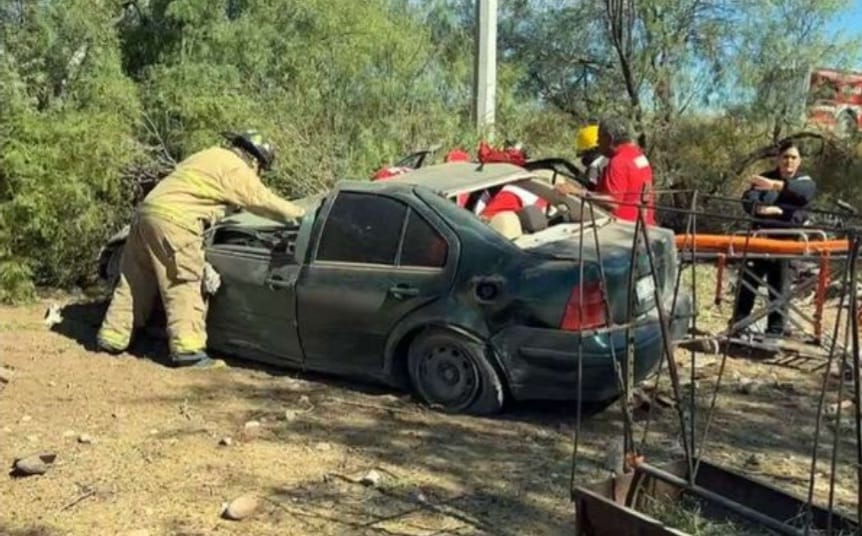 Chihuahua Chih.- “Paramédicos y bomberos llevaron a cabo una valiente operación de rescate para liberar a un hombre atrapado y herido en su vehículo, que se volcó en