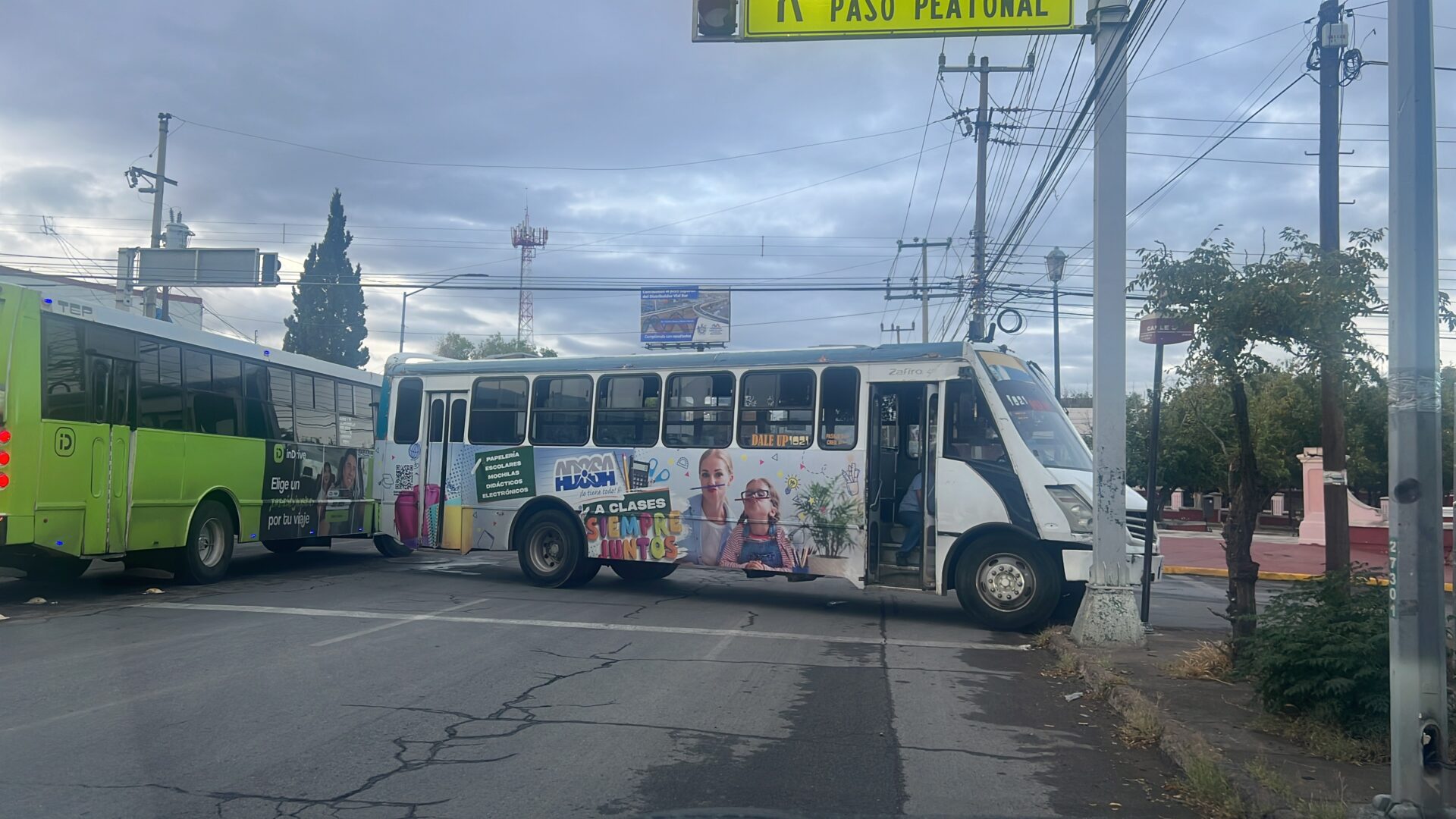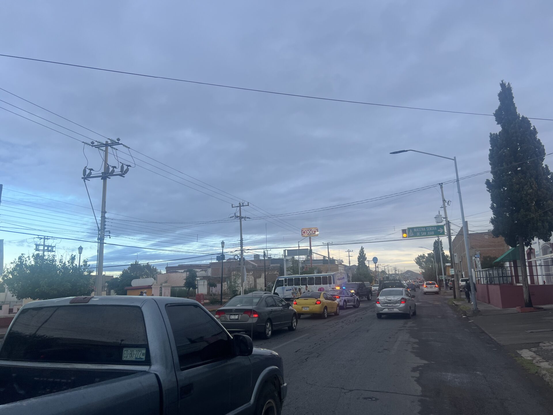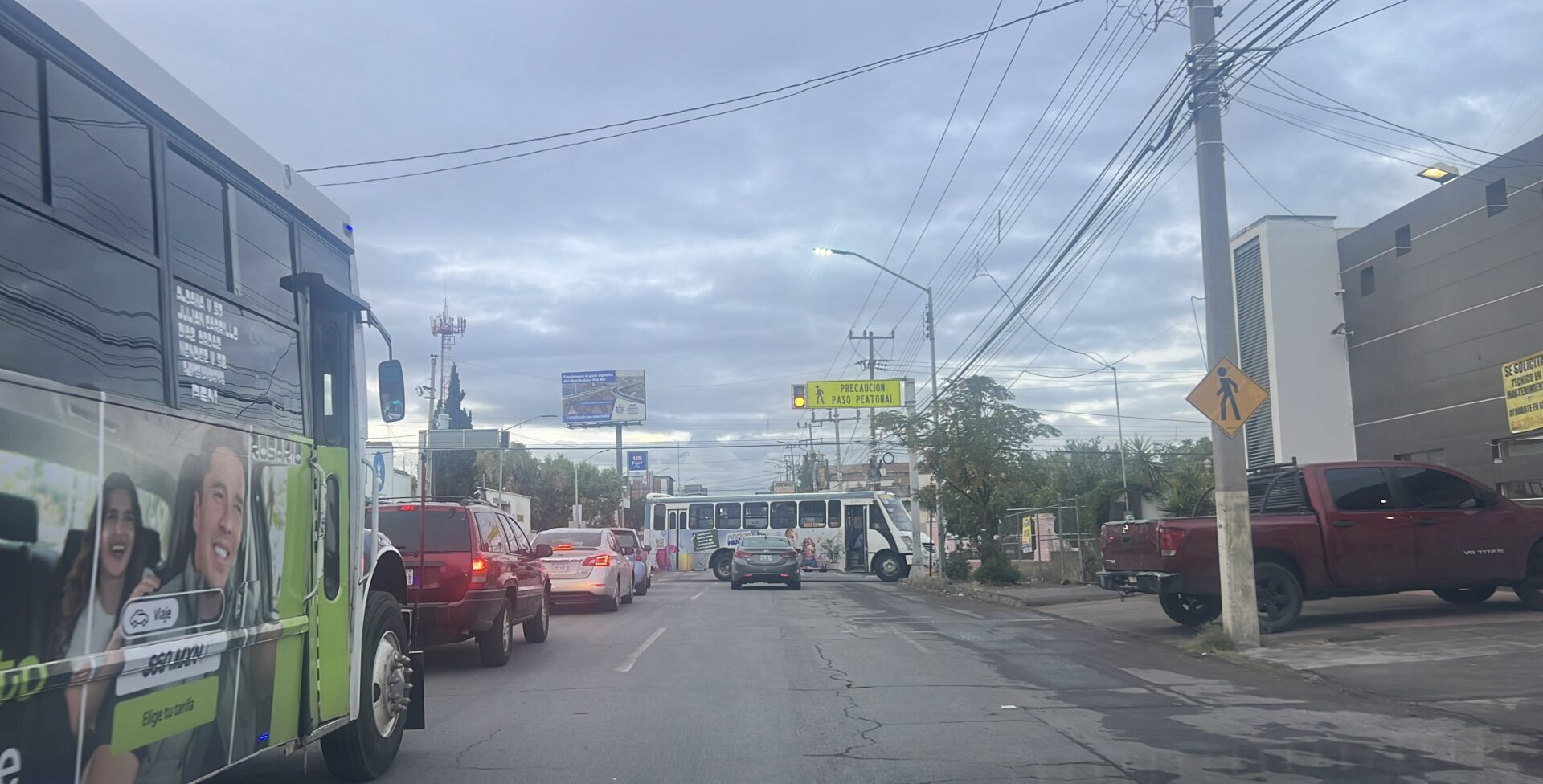 Chihuahua Chih.- “Esta mañana, un camión de transporte quedó atravesado, bloqueando los carriles de la Avenida 20 de Noviembre y la Calle 34, lo que resultó en una importante congestión de tráfico debido a la hora punta. Agentes de vialidad llegaron al lugar para facilitar la circulación, mientras las circunstancias que llevaron al camión a su posición actual permanecen desconocidas.