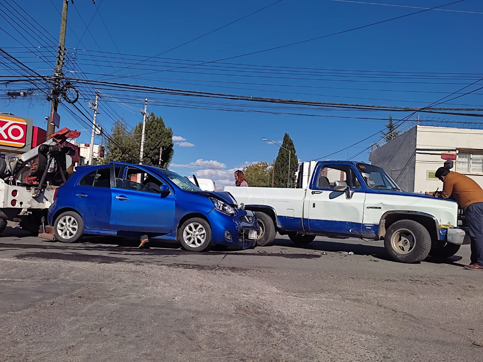 Un aparatoso choque que tuvo lugar en las calles Allende y Talavera dejó tres personas con lesiones, una de ellas de consideración. El incidente fue causado por el