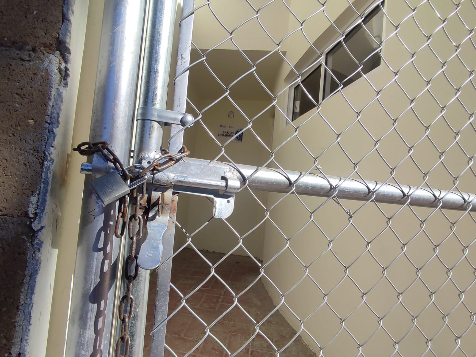 Pero algo que llamo la atención es que uno de los bloques de sanitarios se encuentra cerrado con candado, dejando a un sector sin baños disponibles teniendo que caminar varios metros para encontrar este servicio disponible.