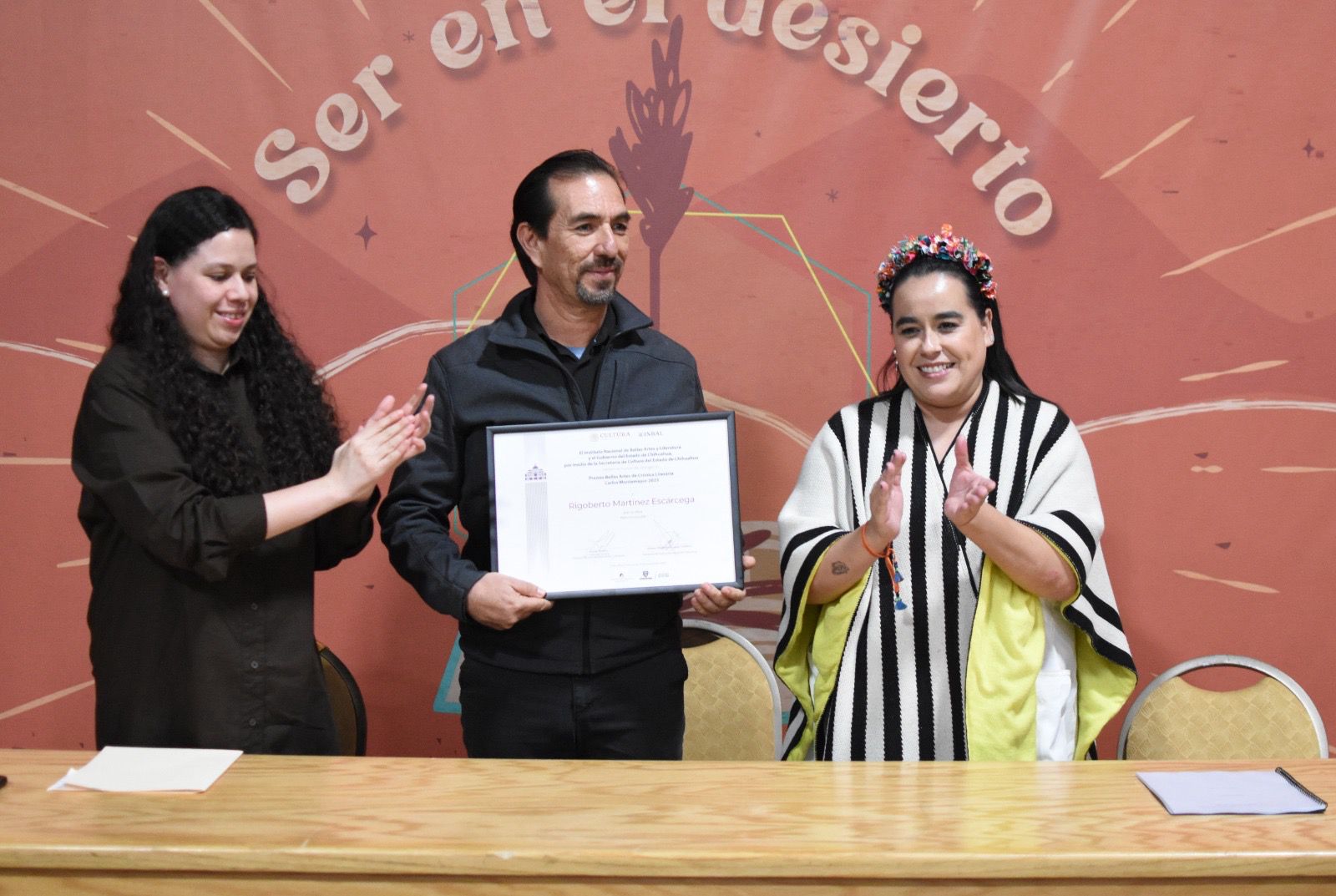 Entregaron el Premio Bellas Artes de Crónica Literaria Carlos Montemayor 2023 a Rigoberto Martínez Escárcega por su obra Retorno Inasible. La ceremonia se llevó a cabo en el